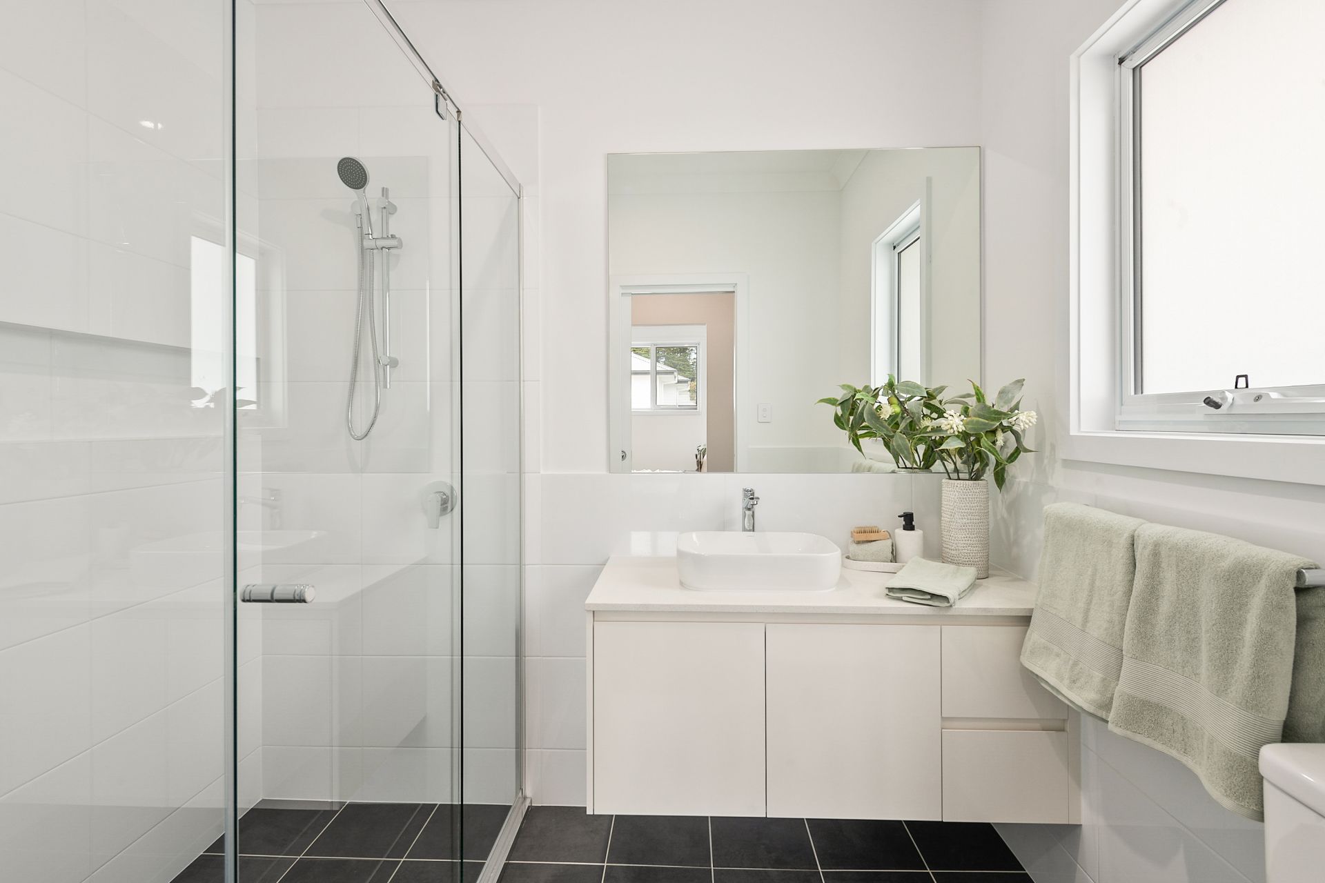 - Both bathroom and ensuite features semi-frameless shower & wall-hung vanity with stone countertops