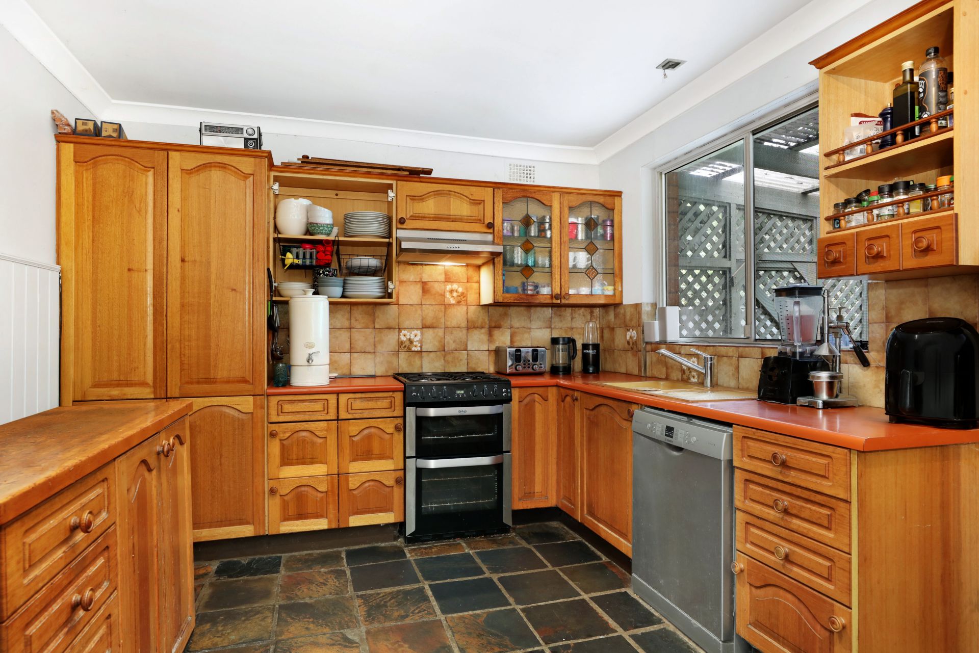 - Functional timber kitchen with island bench, electric cooking and dishwasher