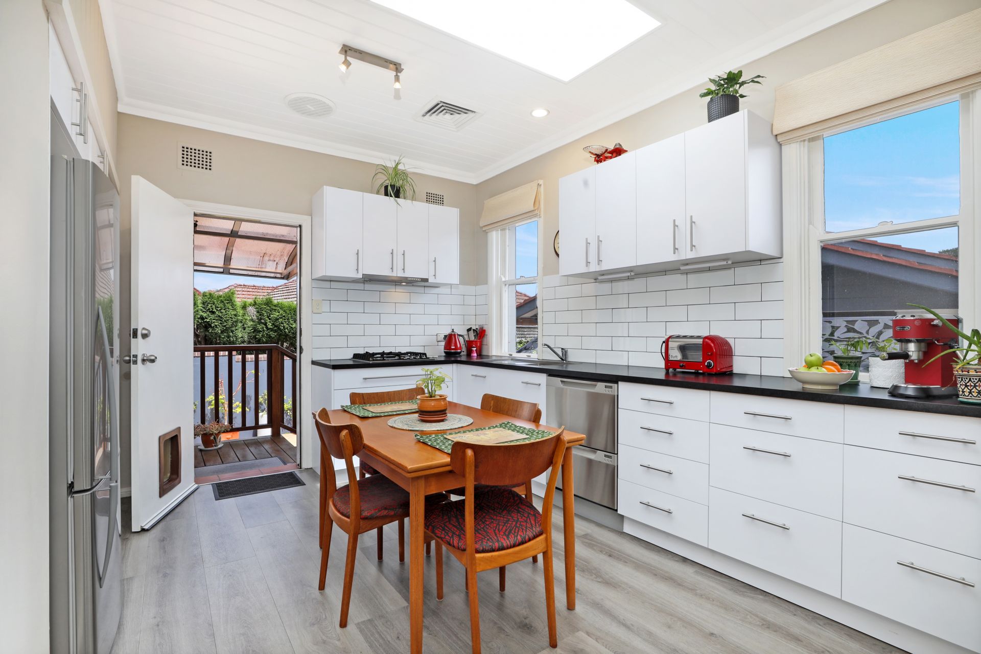 Step inside and you'll immediately feel its warmth and character. Polished timber floorboards flow through inviting, light-filled interiors, complemented by high ceilings and large picture windows that bring the outside in. The living room exudes charm, complete with a built-in bookcase. The spacious eat-in kitchen, with natural light streaming through the skylight, is the true heart of the home, with modern appliances ready to cook up a storm. From here, step outside to a private courtyard featuring brand new steps and a rear portico, creating the perfect space for relaxed entertaining or a quiet morning coffee.